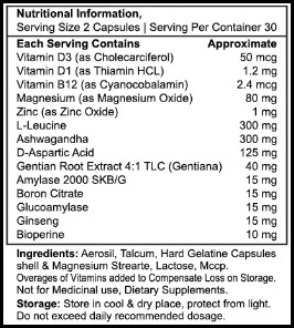 Directions: Take 2 capsules with 8-12 fl oz of water.